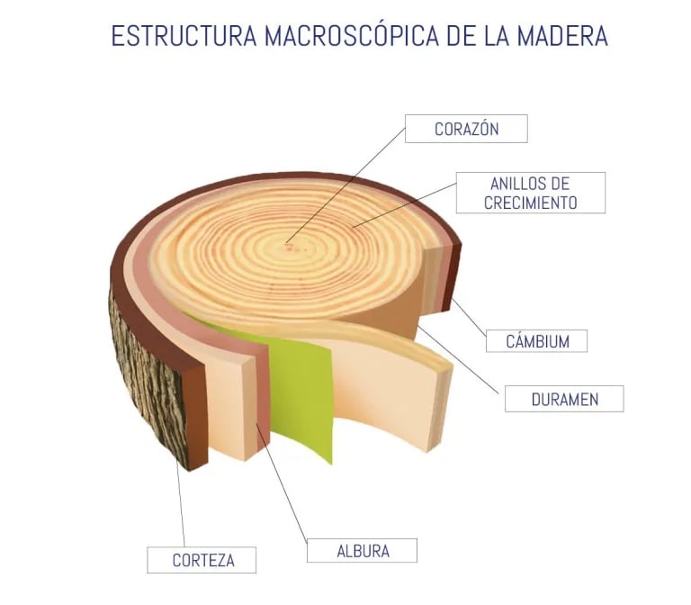 Corazón: a parte central da árbore, que aporta soporte e rigidez sen participar no transporte de savia.